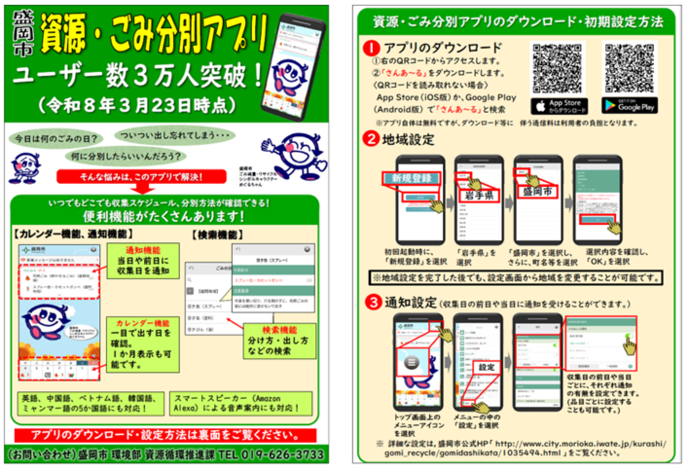資源・ごみ分別アプリ「さんあ〜る」のユーザー数が令和8年3月23日に3万人を超えました。